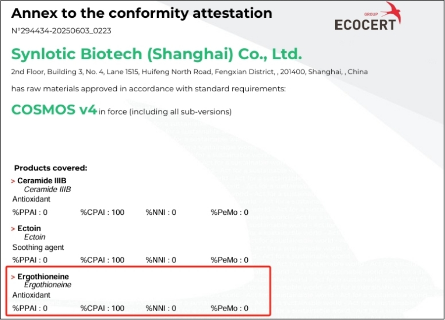 Shanghai Yunluo: Ergothione ले COSMOS प्रमाणीकरण प्राप्त गरेको छ